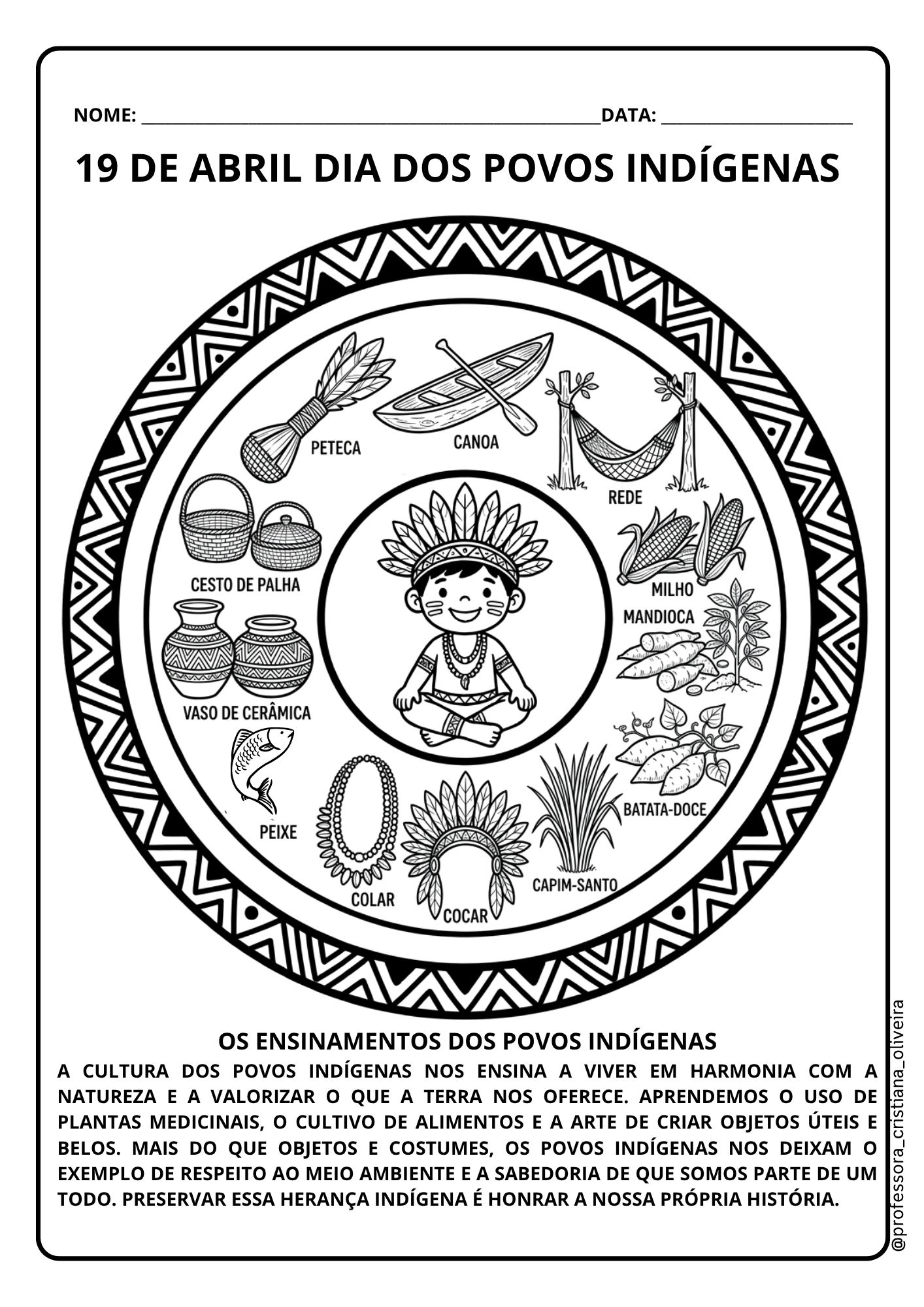 A cultura dos povos indígenas nos ensina a viver em harmonia com a natureza e a valorizar o que a terra nos oferece. aprendemos o uso de plantas medicinais, o cultivo de alimentos e a arte de criar objetos úteis e belos. Mais do que objetos e costumes, os povos INDÍGENAS nos deixam o exemplo de respeito ao meio ambiente e a sabedoria de que somos parte de um todo. Preservar essa herança INDÍGENA é honrar a nossa própria história.