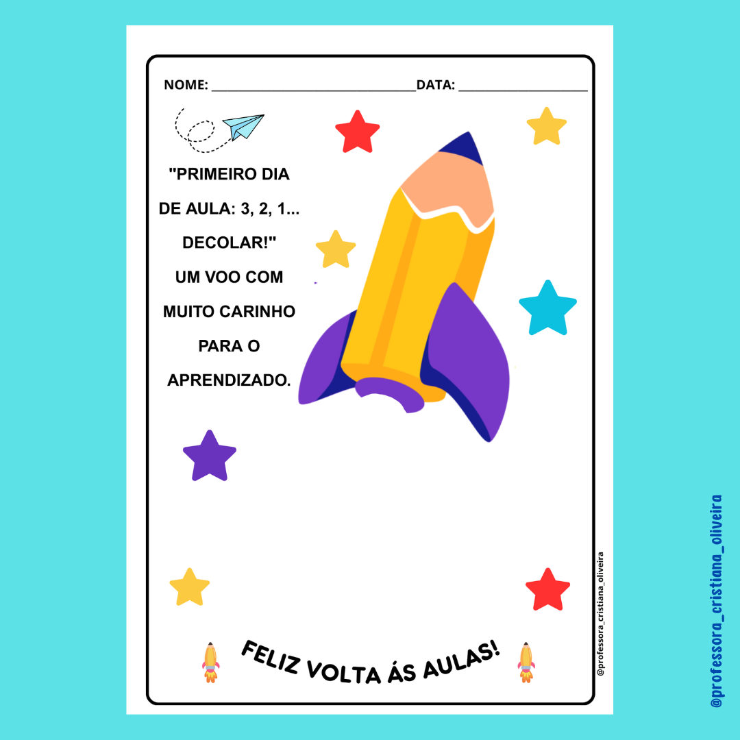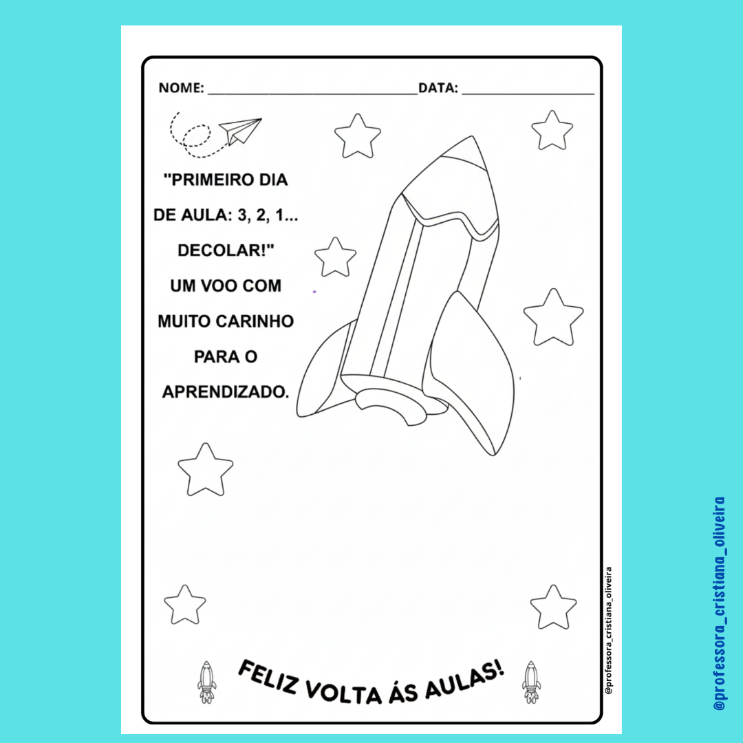 Esta atividade de carimbo da mão com o tema Volta às Aulas propõe que a criança utilize a própria mão para criar a chama de um foguete, simbolizando o início de uma nova jornada de aprendizagens. A atividade traz uma mensagem acolhedora e afetiva, tornando o primeiro dia de aula mais significativo e especial.